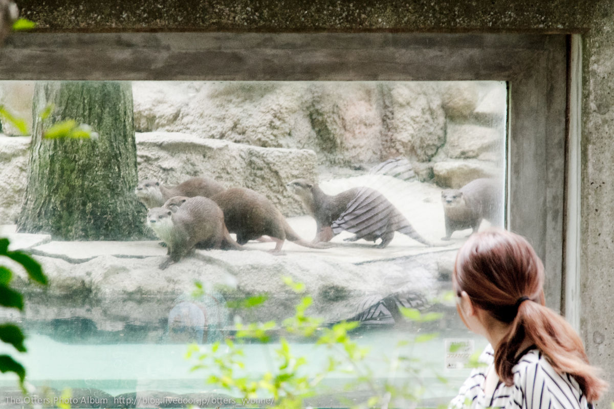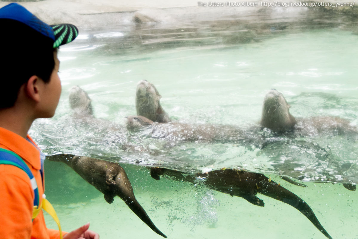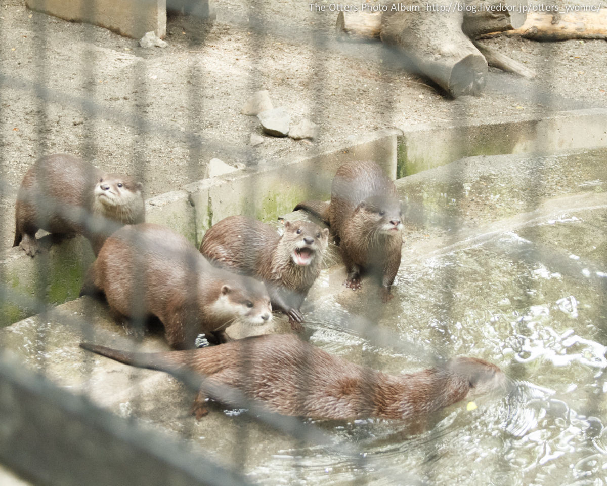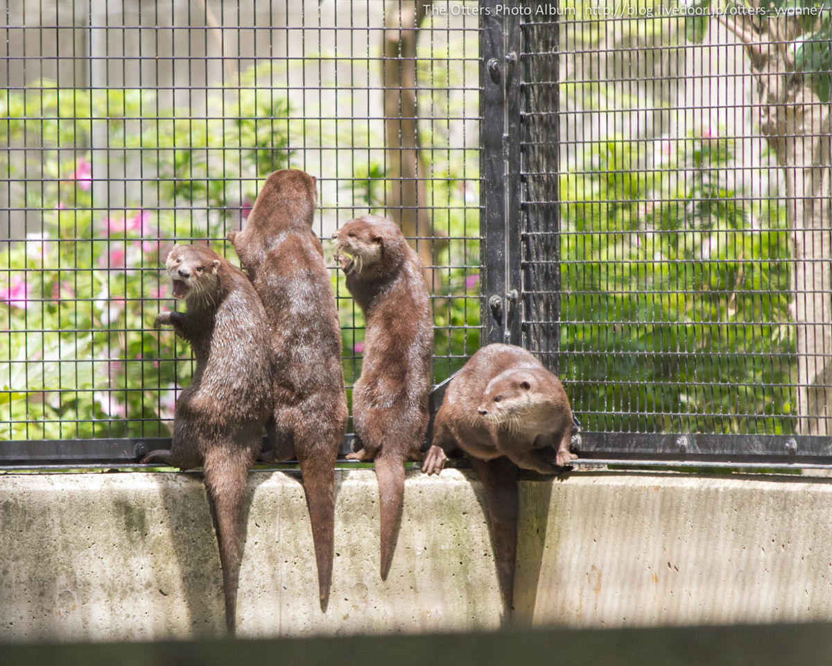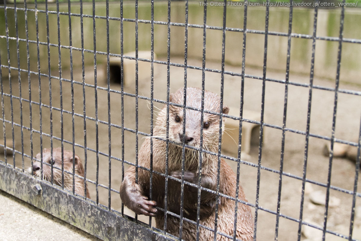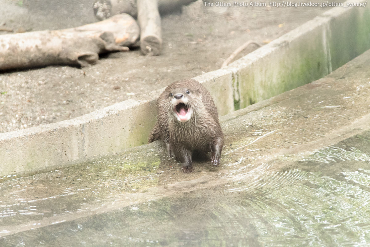 腰くらいの高さはあるコンクリ壁を勢い良くジャンプしてご挨拶にやってきた。よくできる獺。