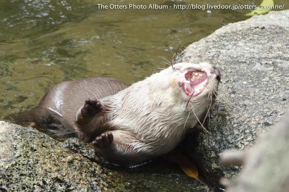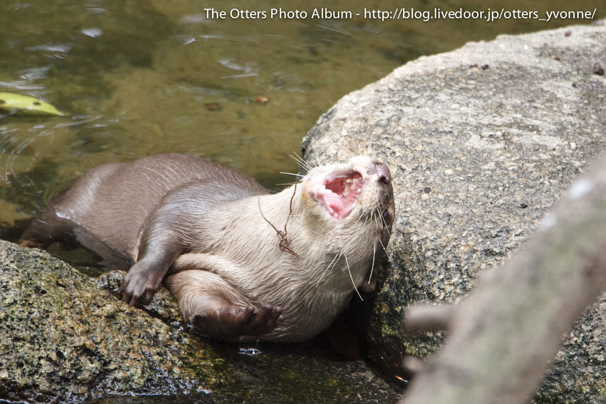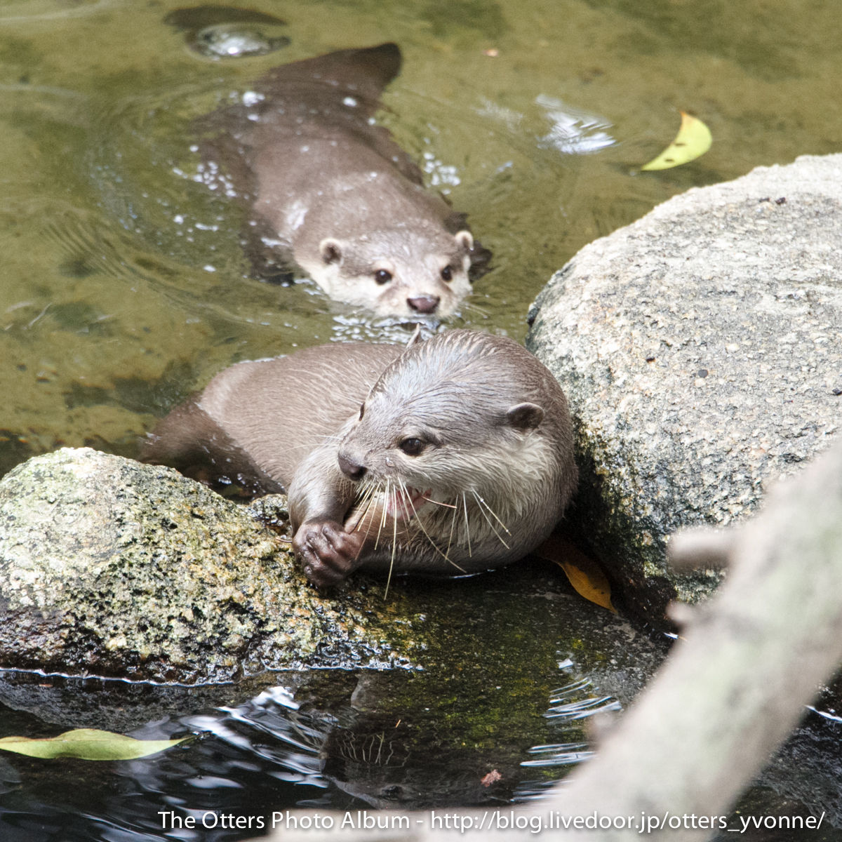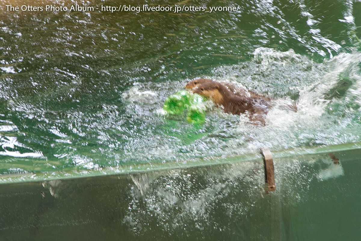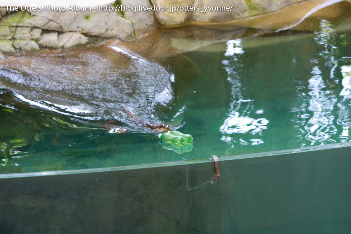 オネイサンが投げた緑色のペットボトルをコツメが泳いで追っかけていたらしい。