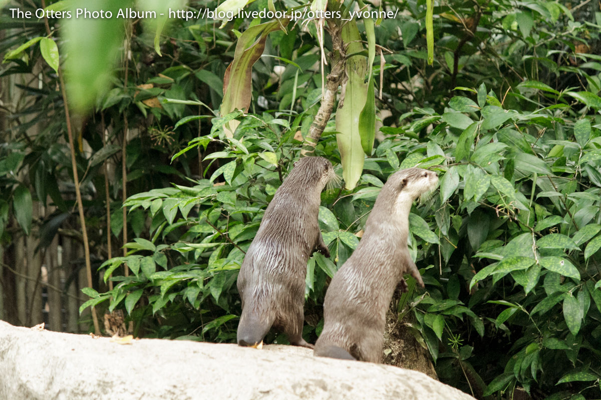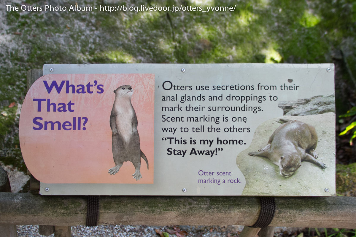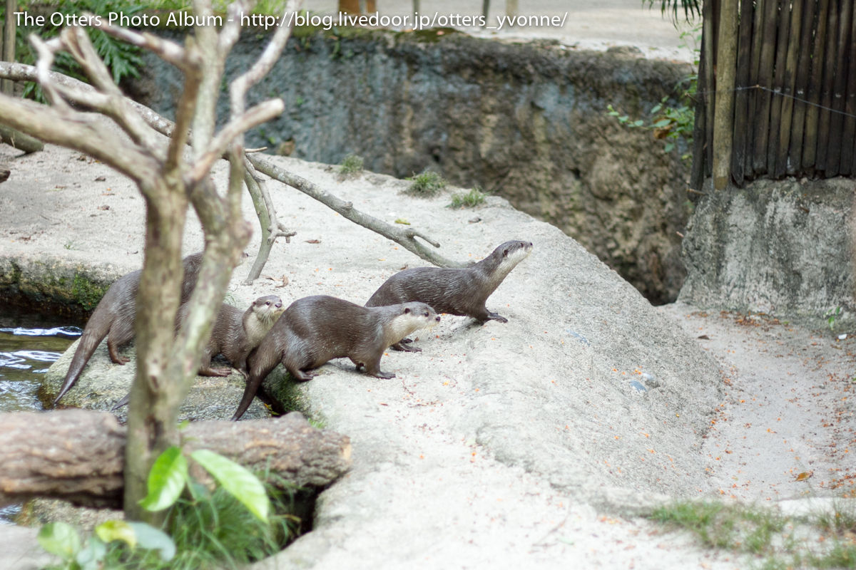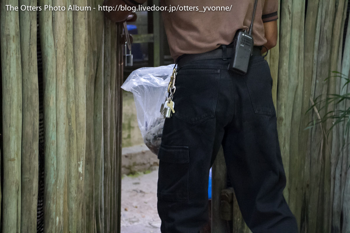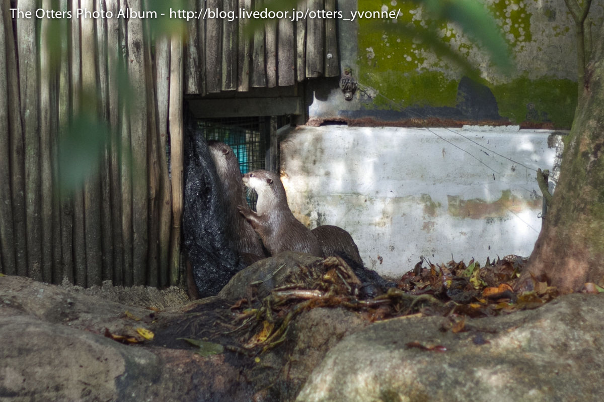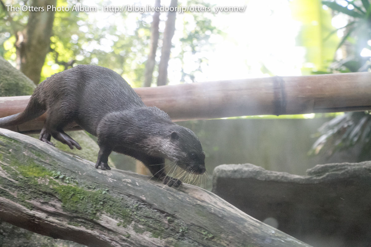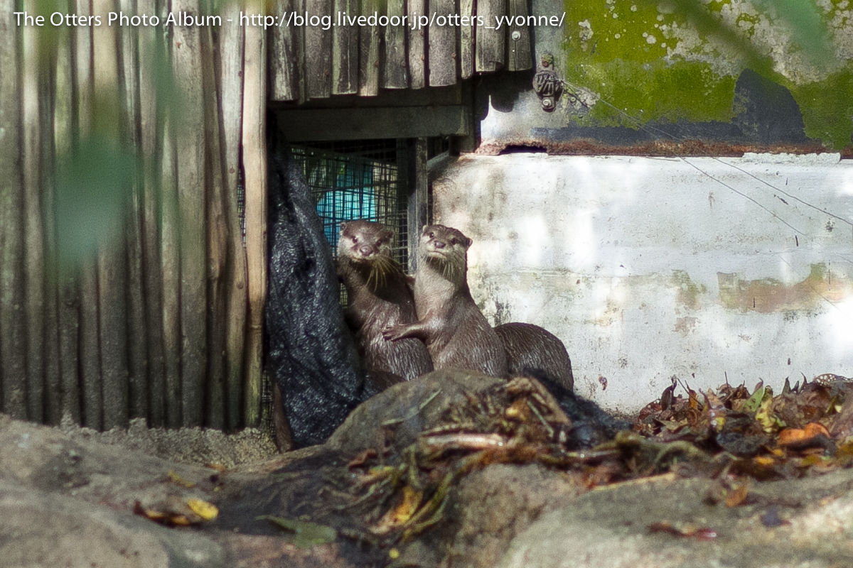 上 の写真のとおり地上にいるコツメを見下げるいわゆる普通の屋外展示と、水中でのコツメの様子を観察しやすいような作りの展示とがあります。お互いに隣接し ており、どちらもバックヤードは先の記事で示した写真の一ヶ所だけのようなのですが、観客からはまったく別の展示に見えます。彼らが屋外で私たちが半屋内 に居ます。
